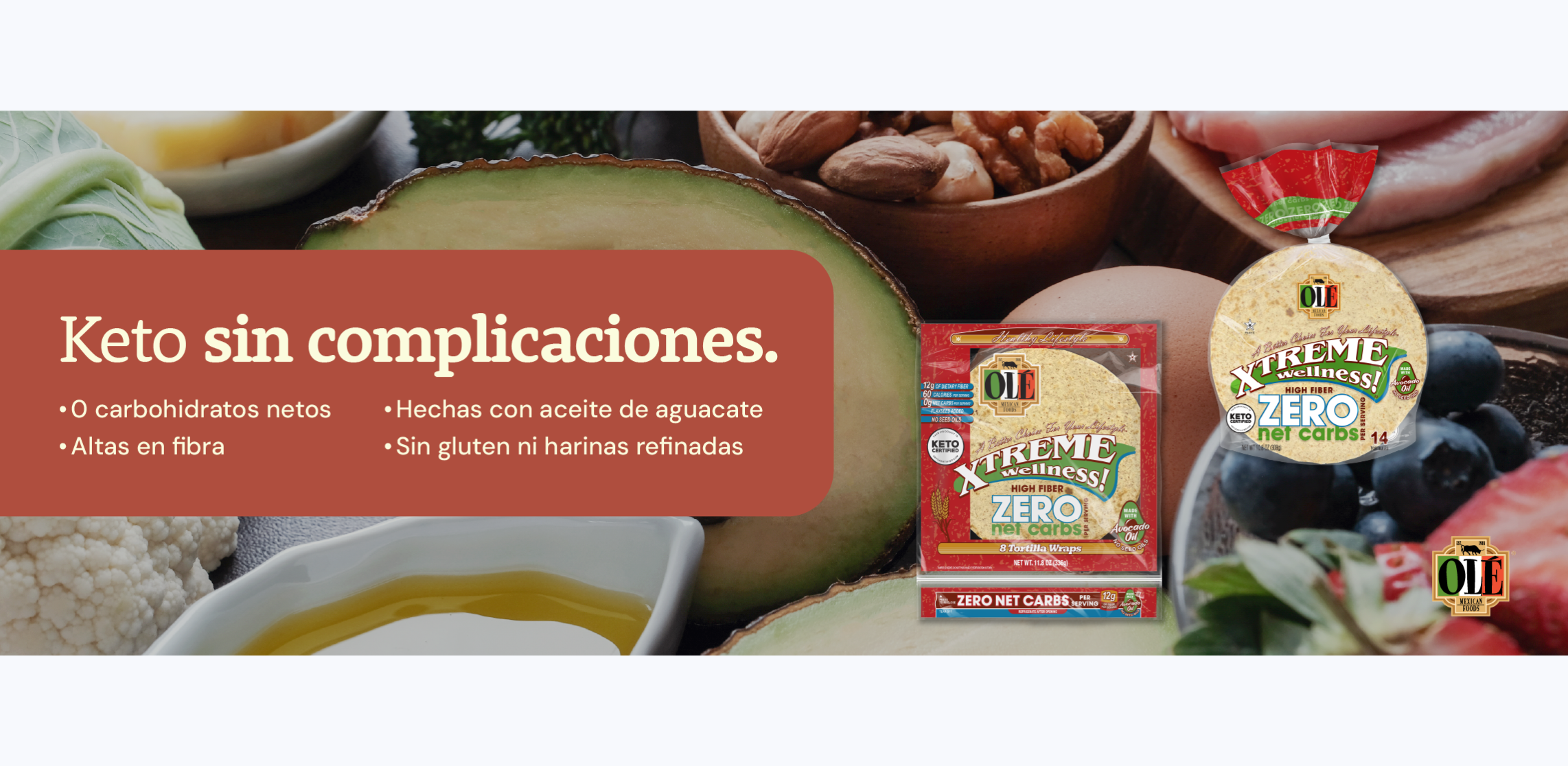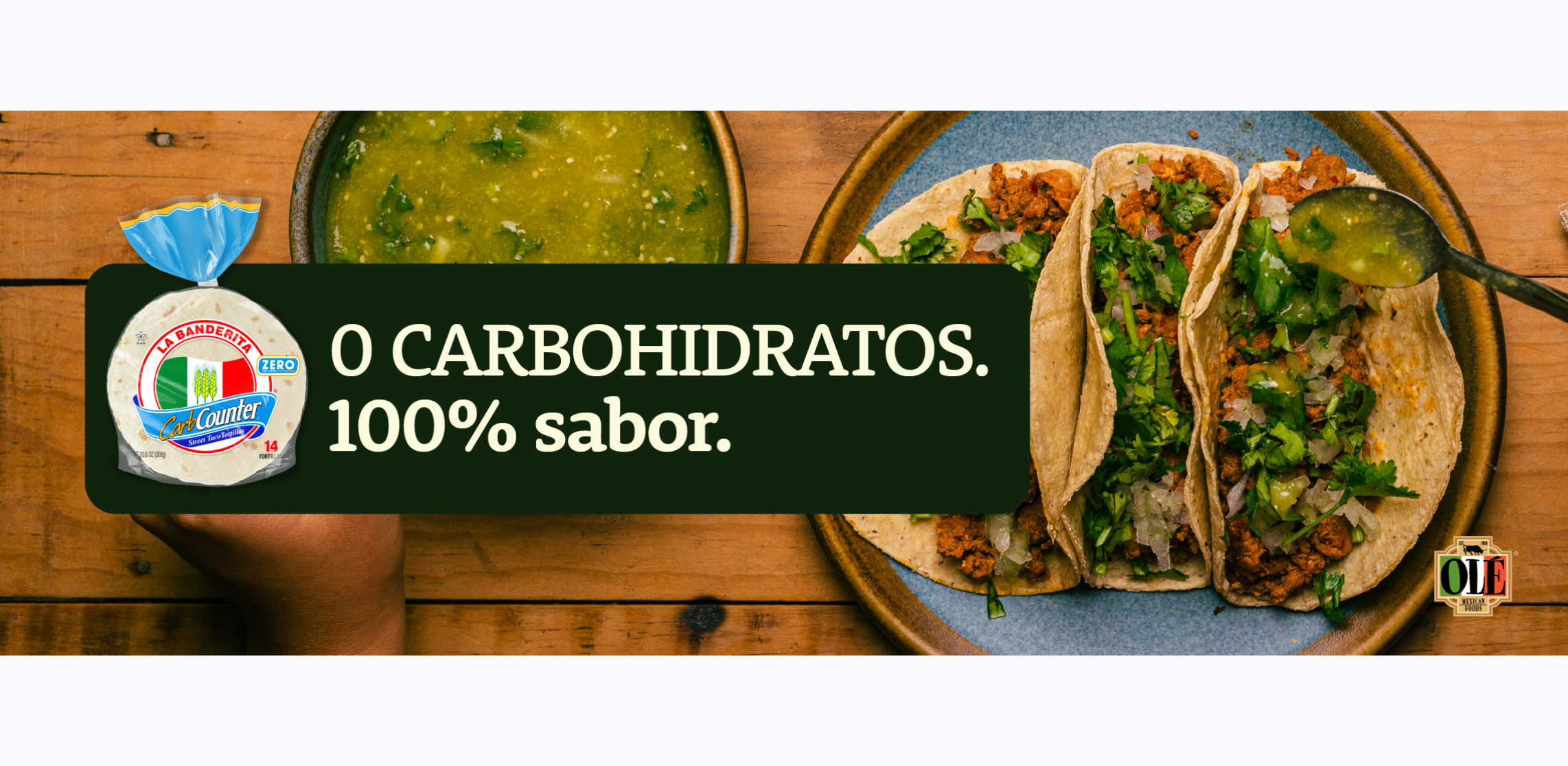 Sí. Las líneas La Banderita Carb Counter® y Olé Xtreme Wellness® High Fiber, Zero Net Carbs contienen 0g de carbohidratos netos por porción y son ideales para dietas keto, low-carb o diabéticos que buscan controlar su ingesta de carbohidratos sin perder sabor